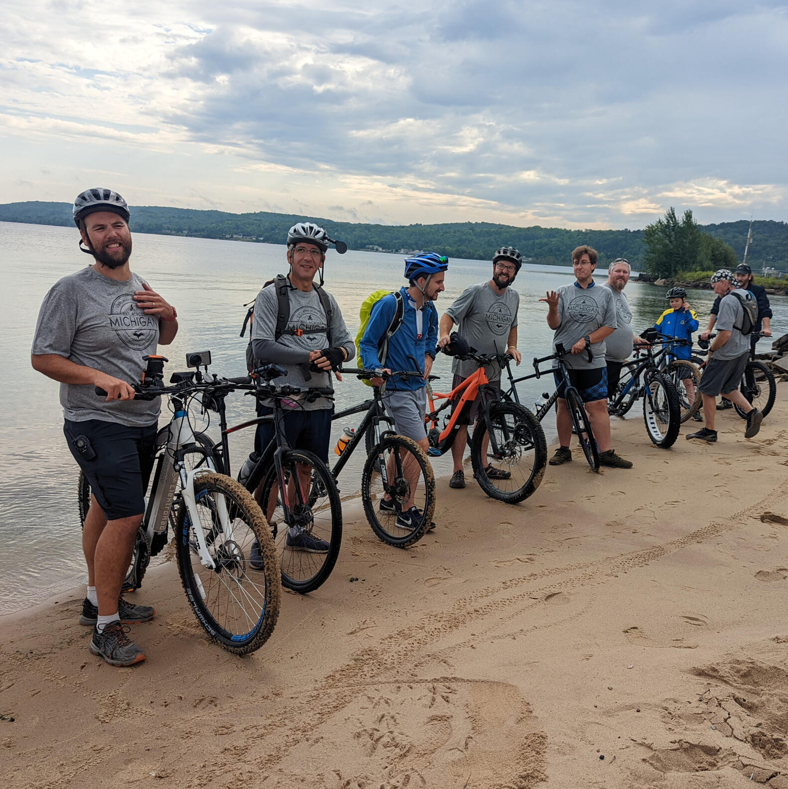 Starting in Lake Superior and ending in Lake Michigan: stopping at several restaurants, waterfalls, and countless inland lakes. Traveling through vast wilderness, State Parks, National Forest, and more.You don't even have to carry your drinks! We have volunteers following the pack to carry extra drinks, snacks, bikes and bike accessories.